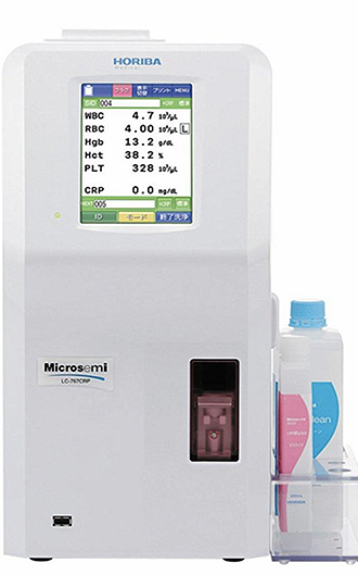 2ml程度の少量の血液で、白血球、赤血球、ヘモグロビン、血小板、CRPの測定が約5分で出来ます。結果がすぐにわかるため、主に感染症を疑った場合に行います。